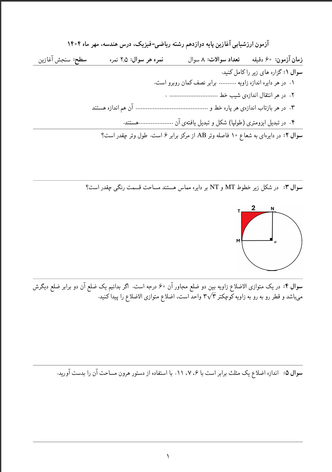 ریاضی و آمار 1 انسانی، دی ماه 1403